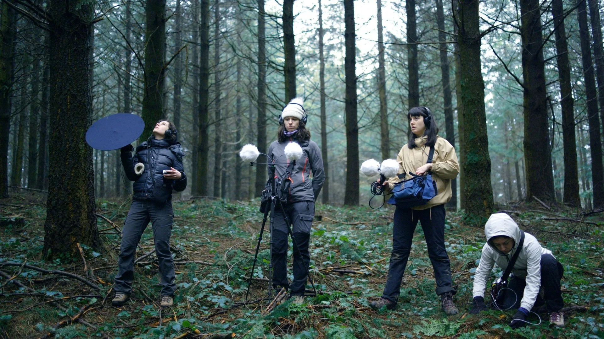Field recording is often associated with men travelling far away to capture pristine soundscapes in remote areas. I wanted to ground my practice in this post-natural landscape, and invited other women field recordists to experiment with me. Together, we performed sonic actions, imagining a sound fiction where we could reactivate the past soundscapes of this place. Inspired by recent scientific studies on acoustic enrichment showing that sound diffusion in damaged environments can help their restoration, I wanted to explore the speculative gesture. The sounds we are playing were recorded on site over several years, collected in bits of forest that have since been cut down or in unlogged areas. Here, without scientific pretension but as a poetic fiction of acoustic care, our sounds represent a certain reactivation of a past soundscape. Like a distant memory of extinct species, could these sounds perhaps have a positive impact on these places?